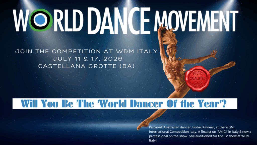 - Il Concorso 'World Dancer of the Year' si svolgerร durante ilย WDM ITALY FESTIVAL 7-18 luglio 2026ย
